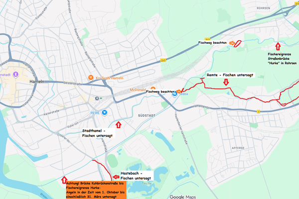 Außerdem muss zukünftig für die Hamel / Fluthamel eine gesonderte Fangmeldung geführt werden. Fänge aus diesem Gewässer sind somit nicht mehr unter Weser und Nebengewässer einzutragen.