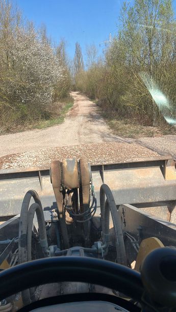 Am 17. und 18. April werden wir die Flächen verdichten, da aktuell jedes Befahren den lockeren Kies noch sichtbar verschiebt und so keine langfristige Lösung entsteht.