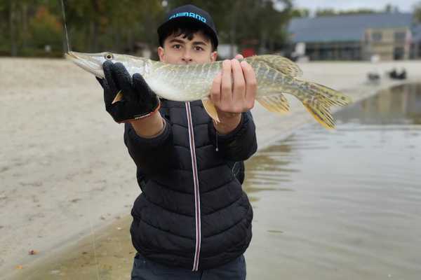 Mit Bollerwagen, Ködern und jeder Menge Motivation machten wir uns auf den Weg – und schon nach wenigen Minuten hing der erste Hecht an der Leine, der jedoch im Drill wieder verlorenging. Am Sandstrand, der im Sommer als Badebucht dient und außerhalb der Saison beangelt werden darf, lief es dann besser: Hier wurden die ersten Barsche und ein kleiner Hecht gefangen.