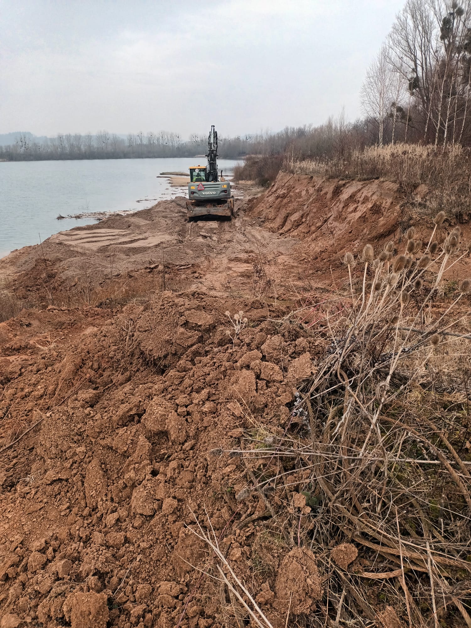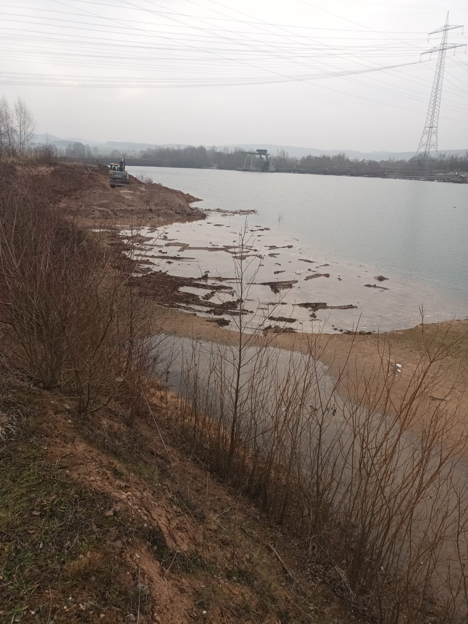 Wer in den letzten Wochen am Baggersee Luttmann unterwegs war, wird gemerkt haben, dass auf der Landzunge zum Strommast hin, reichlich Kies und Erde bewegt wurde. Diese Landzunge wird in dieser Form bestehen bleiben und nicht mehr weiter ausgekiest, weswegen wir hier langsam mit der Rekultivierung beginnen können. Auch hier wurde nochmals eine kleinere flache Uferzone geschaffen, aber es wurden auch zukünftige Angelplätze vorbereitet, eine Bootsstelle geschoben und es wurde damit angefangen den Weg vorzubereiten. Sobald die Firma Minerale in ein paar Jahren dort vollständig ausgekiest hat, werden wir diesen Bereich anglerisch deutlich besser nutzen können. Auch wollen wir hier die Möglichkeit schaffen, diese Angelplätze direkt mit dem Auto zu erreichen. Hierfür muss aber noch einiges getan werden und wir weisen ausdrücklich darauf hin, dass das Befahren derzeit noch nicht erlaubt / möglich ist, da der Boden noch nicht gefestigt ist und noch Drahtseile im Gelände liegen.