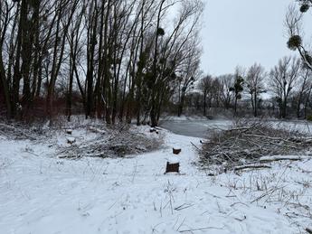 Hier haben wir bereits im letzten Jahr damit begonnen eine Windschneise anzulegen, wobei die Idee reifte, den kleinen Teich mit dem Hauptsee zu verbinden. Früher war dieser Nebenteich häufiger mit dem Hauptgewässer verbunden, wodurch eine Flachwasserzone vorhanden war. Durch die immer flacher werdenden Pegelstände blieb dies in den Vorjahren aus. Hier haben wir inzwischen den Bereich deutlich ausgedünnt, Brombeeren zurück geschnitten und den Bereich wieder erreichbar gemacht. Inzwischen haben wir bereits ein Konzept entworfen, was derzeit zur Überarbeitung beim Anglerverband Niedersachsen vorliegt. Mit Matthias Emmrich, Biologe des AVN, haben wir unser Projekt bereits vor Ort besprochen. Wir hoffen, dass wir hier grünes Licht von Seiten der zuständigen Behörden kommen, um dann mit der weiteren Schaffung einer Flachwasserzone den Lebensraum deutlich aufzuwerten. Hier ist die Umsetzung zumindest mit weniger Aufwand verbunden, als dies am Baggersee Luttmann der Fall war.